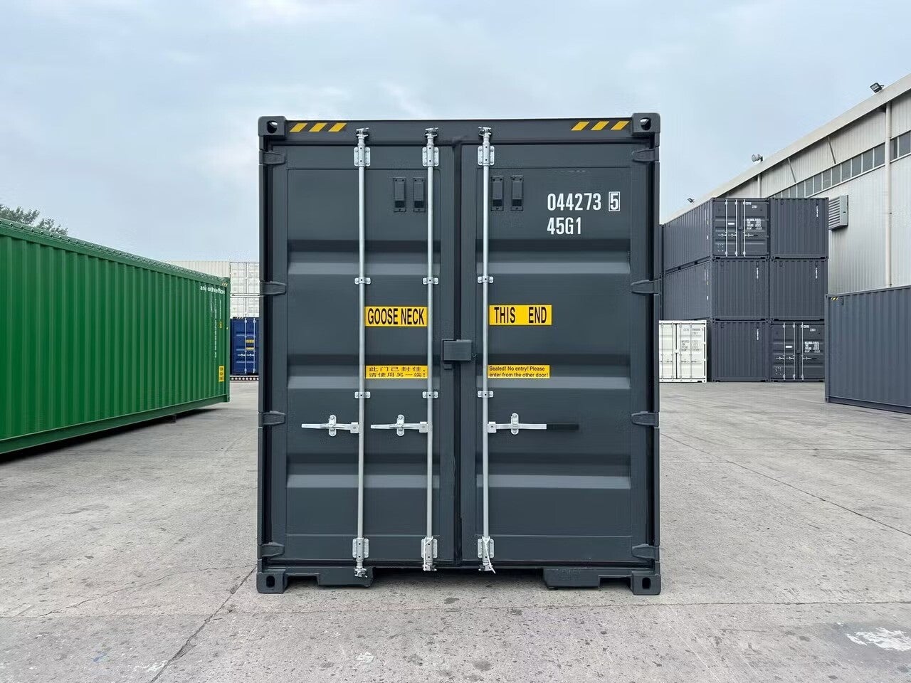 Este contentor 40 pés High Cube com portas em ambas as extremidades é uma solução premium para armazenamento, transporte ou conversão modular. O acesso duplo facilita carregamento rápido e exploração eficiente do espaço, ideal para oficinas, armazéns ou logística.