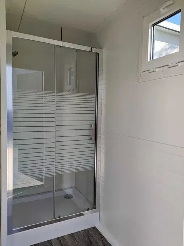 Ce pavillon sanitaire neuf de 3,20 × 2,30 m est une solution complète et prête à l’emploi, combinant un espace WC indépendant et un second espace équipé d’un WC + douche. Conçu en panneaux sandwich isolés, il offre robustesse, confort et une installation ultra-rapide : il suffit de le raccorder aux réseaux.