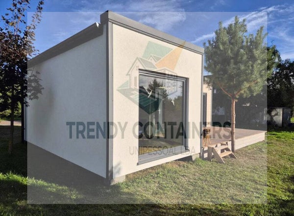Descubra a casa modular ZIO 44 m², uma habitação moderna em estrutura de madeira concebida para uso durante todo o ano. Com um design em L composto por dois módulos, oferece um espaço funcional, confortável e adaptável. Produzida em fábrica com materiais certificados, garante durabilidade e eficiência energética.